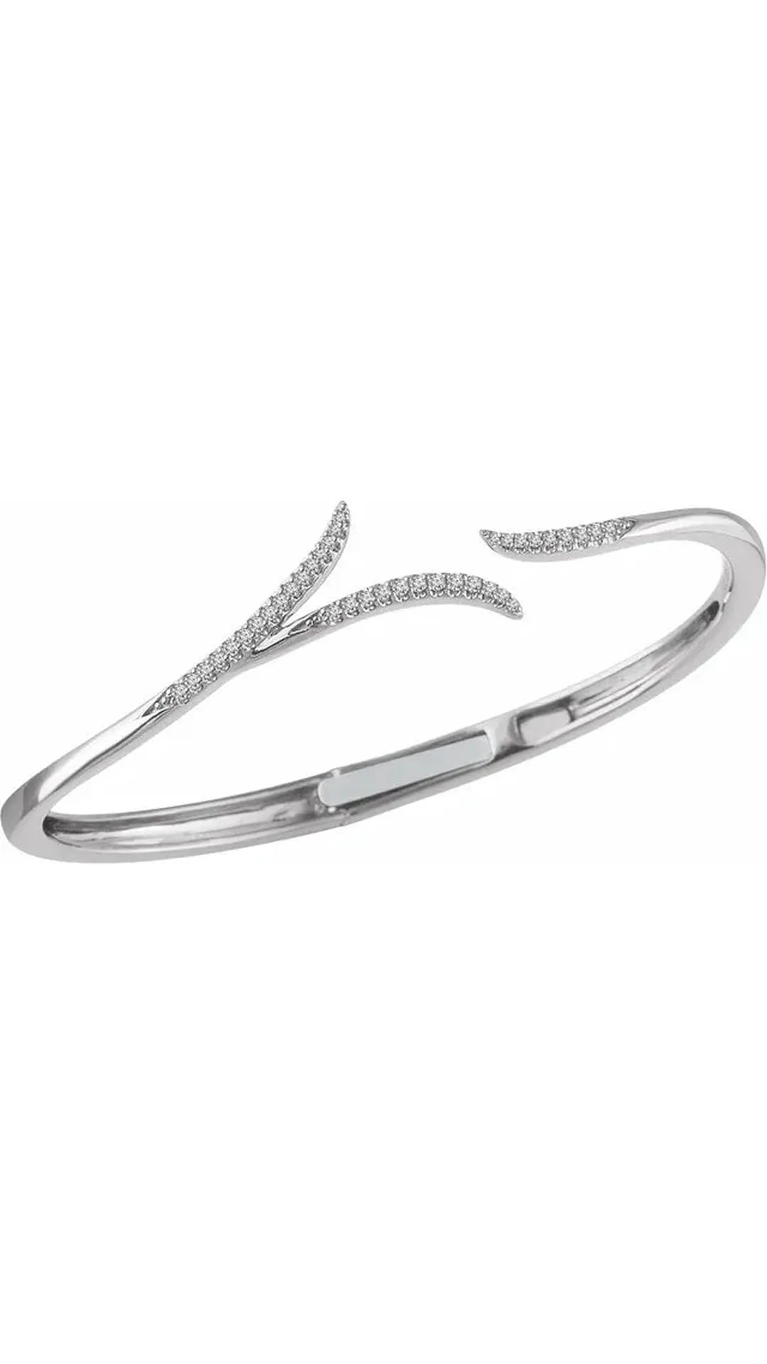 14K White 1/4 CTW Natural Diamond Hinged Cuff Bracelet