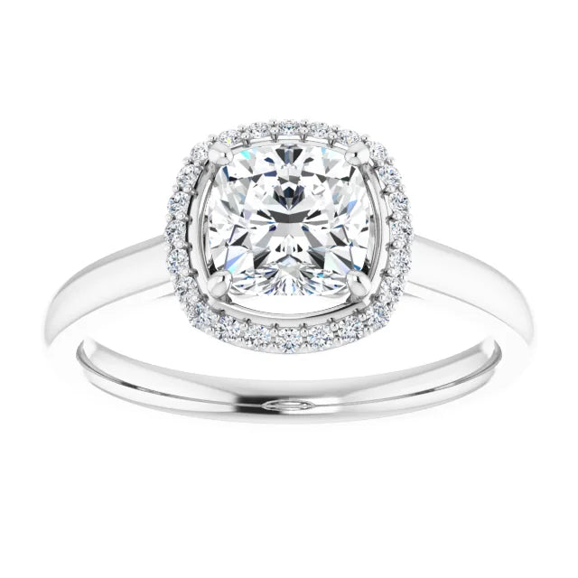 14K White Gold 6 mm Cushion Halo-Style Engagement Ring
