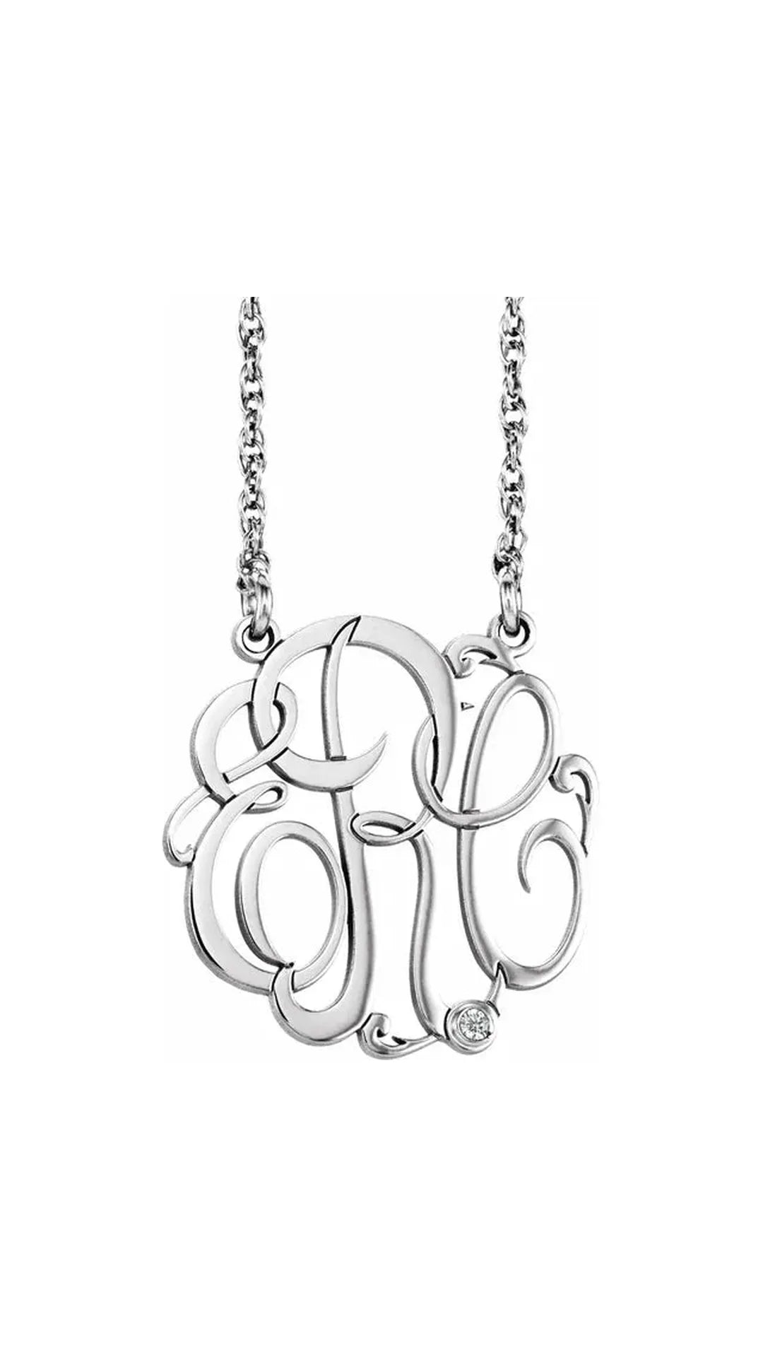 10K White Imitation Diamond 3 initials Script 20 mm Monogram 18" Necklace