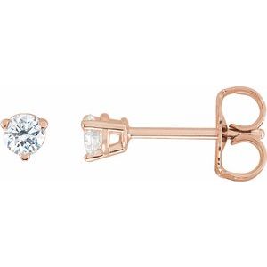 22354 / 14K Rose / Set / Round / Natural Diamond / Pair / 3Mm :: 1/5 Ctw / I1, G-H / Friction / Friction Backs Included / 3-Prong / Polished / 1/5 Ctw Natural Diamond Earrings