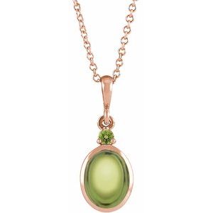 87438 / Necklace / Set / 14K Rose / Oval / Natural Peridot / 5 X 3 Mm / Natural Peridot / 16-18 In / Polished / Natural Peridot Bezel-Set Cabochon Necklace
