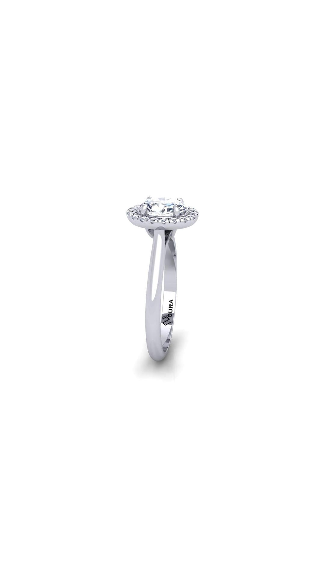 Inspired by the beauty of a flower, the Lilac engagement ring shines with a brilliant halo styled setting. Featuring a central 0.4 ct central diamond surrounded with a bloom of supporting stones, this ring is both simple and beautiful, like the lilac.